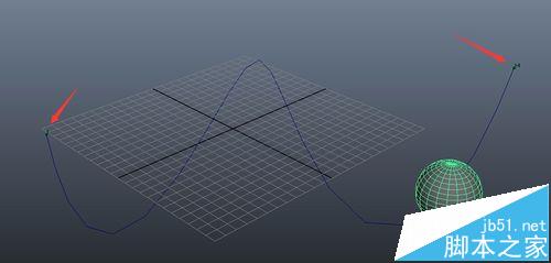 5、點擊attach to paths命令,可以看到曲線的起點和結束點都出現了關鍵點,同時球體自動吸附到曲線上,如圖所示: