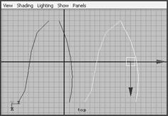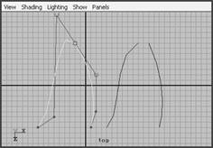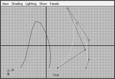首先制作出曲線,生成如圖 4-24 所示的兩條 CV 曲線,按住 X 鍵并單擊把它們捕捉到刪格,然后把它們復(fù)制并平移到一邊。