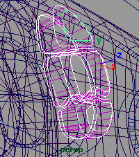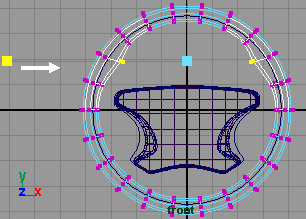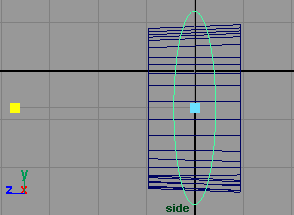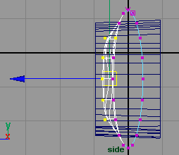 回到側視窗,將圓柱體的 z 軸方向縮小到 0.216(fig 7). 接下來選擇中間的一些 cv 點 (fig 8).