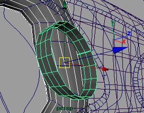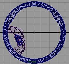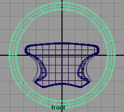 回到前視窗,創(chuàng)建一個 nurbs 圓環(huán),半徑為 3.8,section 為 22 , hight ratio 為 0.08, 并在 x 軸方向上旋轉 90 度 (fig 16), 選擇這 4 個 cv 點并將它們向中心方向拉伸一點 .(fig 17)