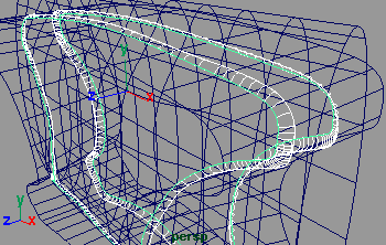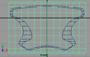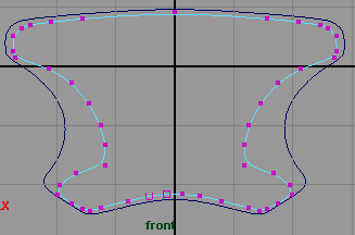 在側視圖復制曲線,并在 z 軸方向上移動約為 0.951(fig 3), 然后將新復制的曲線移動各 cv 點使其形狀像 (fig 4) 所示,可以看出它比原來的曲線輪廓要小。