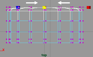 回到側視窗,將圓柱體的 z 軸方向縮小到 0.216(fig 7). 接下來選擇中間的一些 CV 點 (fig 8).