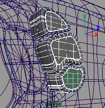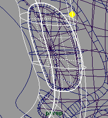 選擇 loft 出來的曲面,到 edit nurbs trim tools, 選擇要保留的曲面區(qū)域,如 (fig 14)(fig 15) 所示,然后 trim 它。