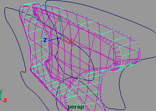然后將所有的 nurbs 曲面顯示出來,命令 display show show geometry nurbs surfaces . 得到 (fig 39)