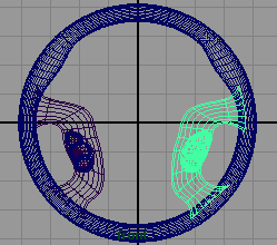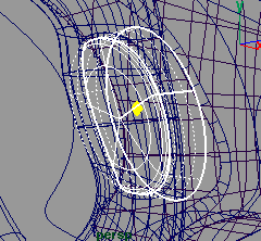 接下平,創(chuàng)建一個 nurbs 圓曲線, span 為 18, 并在 z 軸方向上旋轉 -41.676 度,并將 z 軸方向縮小到 0.238, 在 x 軸方向上移動到 -2.484 , y 軸移動到 -2.736(fig 18). 接下來你需要復制一些曲線并旋轉移動到 (fig 19) ,適當移動它們的一些 cv 點。