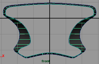 隱藏 nurbs 曲線,命令 display hide hide geometry nurbs curves , 將這些曲面移動到如 (fig 35). 回到前視窗,選擇中心的物體并隱藏它們 ( 按 ctrl h)(fig 36).