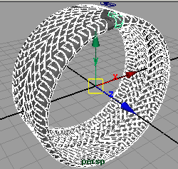 ok next,selecteditselectall by type nurbs surfaces , go to rendering module, go to render set nurbs tessellation then hit set and close. go to your render globals , set your anti-aliasing quality to production quality , resolution to about 640x480. now render it, then you will have this cute looking tire, of course you could create black rubber shader for this tire :)