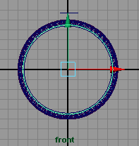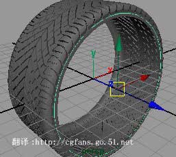 現在回到前視窗當中,新建一個 nurbs 圓形曲線 , 半徑為 4.45, 并在 x 軸上旋轉 90 度 (fig 24), 在 z 軸方向上移動 2.138 的距離 ( 靠近 master_tire 圓柱體 )(fig 25). 記住 : 該曲線必須在 master_tire 曲面里,但是不要太遠,接近一點 .)