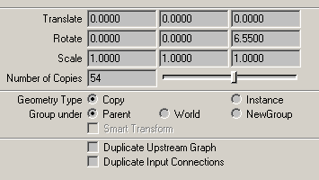 接下來 , 將所有物體選擇,復制它們,復制的屬性如 (fig 16), 我們可得到如 (fig 17) 所示的物體 .