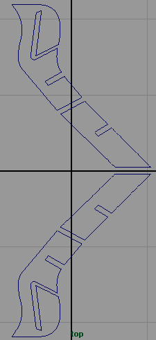 with the new projection curves still selected, go to menu surfaces extrude option box ,selectdistance and enter -0.15 on extrude length , output geometry to nurbs (fig 7), then hit extrude, then from pers bottom view you will see this these extruded objects (fig 8)