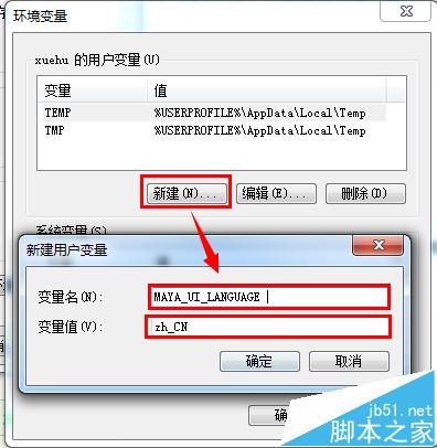 3、新建一個(gè)環(huán)境變量,變量名輸入MAYA_UI_LANGUAGE ,變量值輸入zh_CN就是啟用中文界面,變量值輸入en_US就是啟用英文界面,根據(jù)你的需要進(jìn)行修。