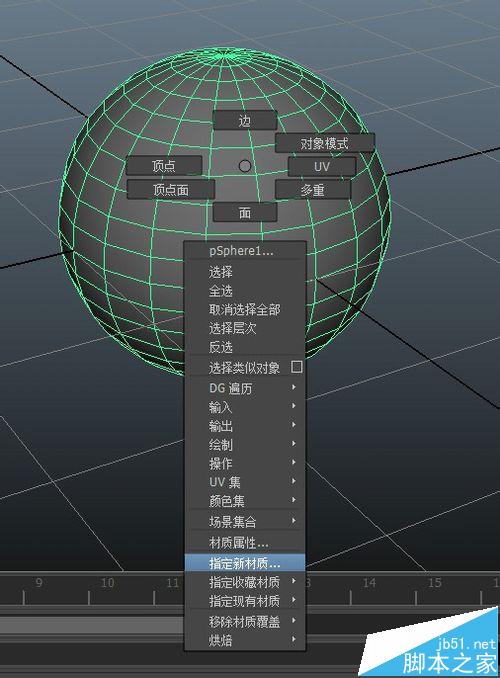 2、點擊球體,點擊重“指定新材質”給模型指定材質球。點擊“Blinn”,給模型指定玻璃材質。