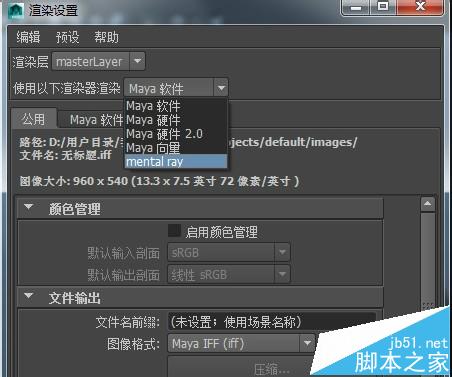 7、我們打開渲染屬性,將使用以下渲染器改成“mental ray"渲染器。然后打開渲染器進行渲染,就可以看到效果了。