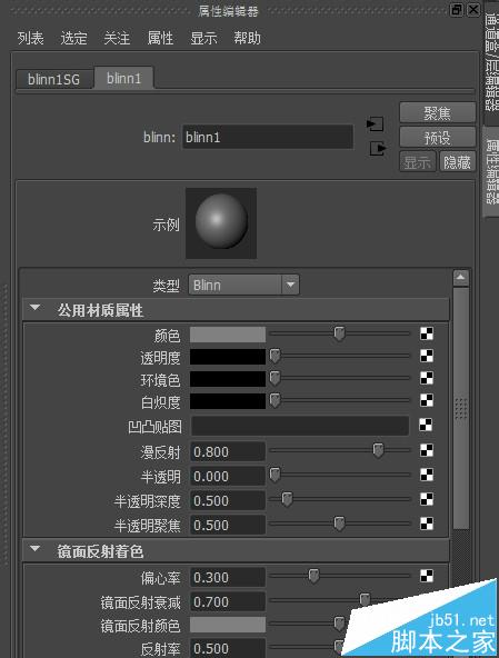 3、指定好我們可以看到球體比原先亮了很多,就說明我們的Blinn材質已經指定上了。