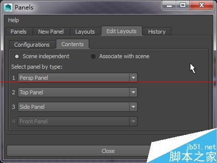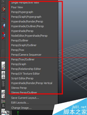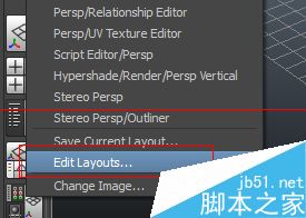 5、自定義窗口顯示:若maya提供的顯示中沒有自己想要的,我們可以通過編輯窗口顯示來更換自己想要的顯示哦。點擊菜單中的“edit layouts”項,打開編輯窗口。