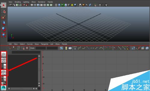 2、我們可以通過設置,將工作區的內容顯示為其他我們想要的版塊。接下來,我們一起來設置一下吧。在maya中,我們可以在左側工具按鈕中看到有一些默認的顯示內容方式。點擊相應的按鈕,我們可以得到不同的顯示內容的窗口。比如顯示透視圖和曲線編輯器的方式。
