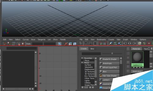 8、這里,將上方的顯示為透視圖,然后下方左邊顯示曲線編輯器,右邊顯示材質編輯器,如圖: