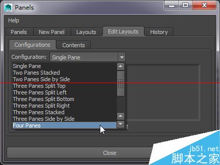 7、比如,選擇了3個視圖顯示后,在“contents”中可以分別選擇一下自己想要的每個窗口中顯示的內容,如圖: