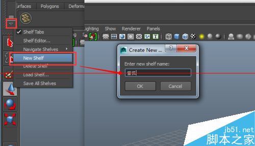 a、首先選擇左邊的向下三角-new shelf-命名(雪狐)