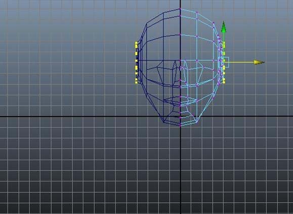 4、再加一個循環邊,換到前視圖,把耳朵從頭部拉出來