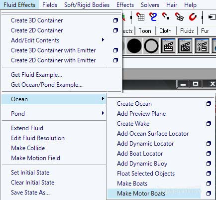 4、仍然選擇父對象進入Fluid Effect>Ocean>Make Motor Boats,這將使父對象附加到海洋表面,并隨著海洋移動而移動。