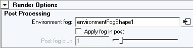 2、Render Settings窗口中,選擇Maya Software作為要使用的渲染器。單擊空白文本字段旁邊的框。它會自動添加環境霧,并打開一個屬性編輯器來調整霧的參數。