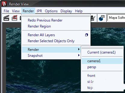 5、此時你會看到父對象沿海洋移動。要從相機角度渲染場景,請到Window>Rendering Editors>Render View。“渲染視圖”窗口彈出,轉到Render>Render>camera1,如下面的截圖所示。