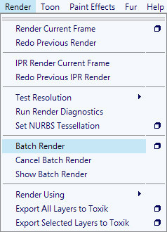 6、將模塊界面更改為渲染,方法是按住H將場景中的任意位置按住H,左鍵單擊并將鼠標拖到“ 渲染”上。這將改變Maya頂面的菜單按鈕。轉到Render>Batch Render,或者直接提交文件至云渲染,進行云端自助渲染。支持實時預覽,支持各種插件渲染。