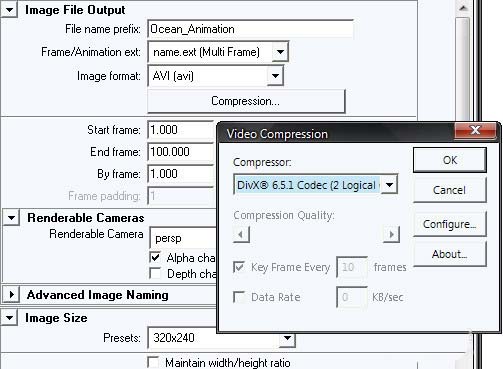 5、將彈出Render Settings菜單,將文件名前綴更改為動畫的名稱,將圖像格式更改為.AVI。根據動畫的長度,改變起始幀和結束幀。最后,從 Renderable Camera下拉菜單中選擇您想要渲染的相機。