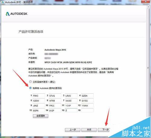 4、輸入序列號與密鑰,點擊下一步。
