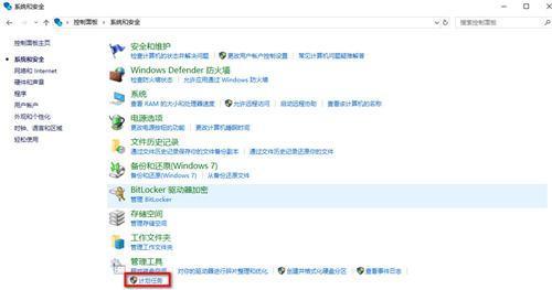 2.在“系統(tǒng)和安全”窗口中找到“管理工具”,并點(diǎn)擊“計(jì)劃任務(wù)”。