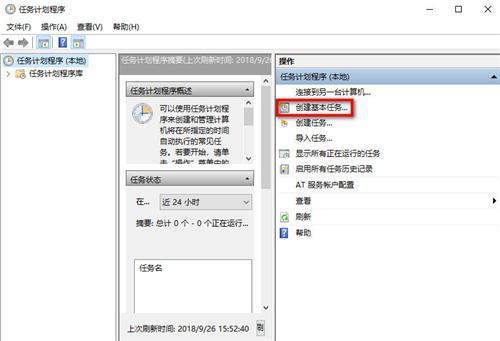 3.在“任務(wù)計(jì)劃程序”窗口中找到右方操作“任務(wù)計(jì)劃程序菜單”的“創(chuàng)建基本任務(wù)”。