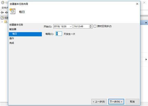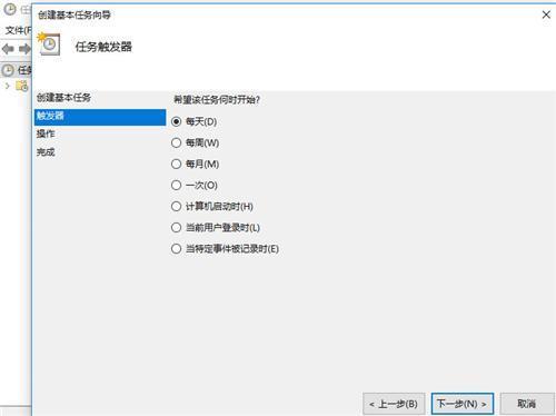 5.在“觸發(fā)器”中選擇任務(wù)開始的時(shí)間,例如選擇每天,還有再進(jìn)一步設(shè)定準(zhǔn)確的時(shí)間,在這里可以設(shè)置為每天的幾點(diǎn)開始這項(xiàng)任務(wù),完成后進(jìn)入下一步的“操作”。