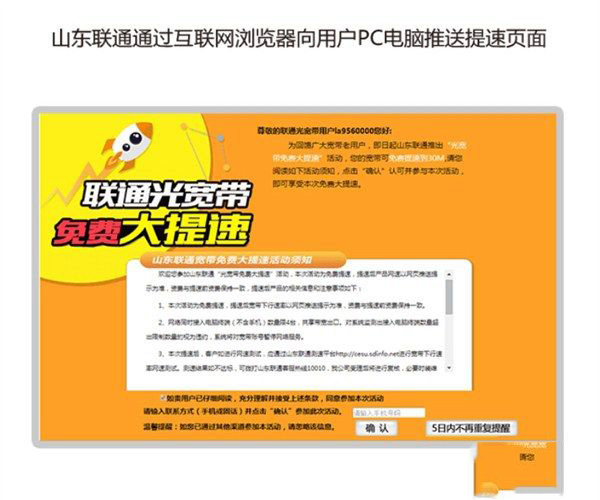 為回饋廣大寬帶老用戶,即日起山東聯通推出“山東聯通光寬帶免費大提速”活動。我們真誠的邀請您參與此次提速活動,請您填寫個人信息并閱讀相關產品變更協議后,參與提速活動。
