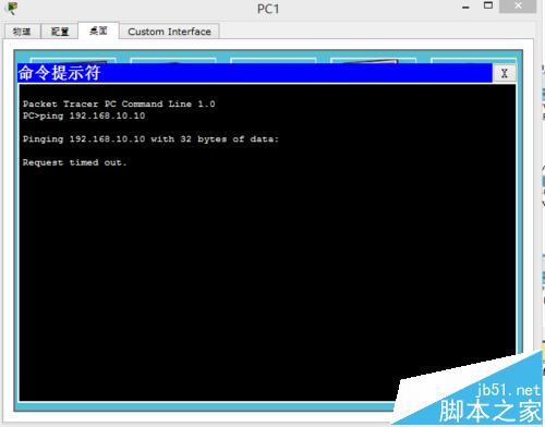 5、待所有的路由器配置好之后,各個設備都亮綠燈,代表你每個設備都正常工作,然后檢查一下電腦之間是否可以通信,如不可以是正常的,因為還沒有進行動態路由rip配置,如下圖所示: