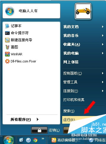 開始→運行(或者使用Win+R快捷鍵也能調出運行)。