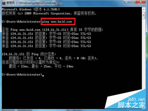 然后輸入ping空格加網(wǎng)址,按enter,這里以百度網(wǎng)為例,查看該網(wǎng)站網(wǎng)絡(luò)是否通暢。是否網(wǎng)絡(luò)的問題。如果不是可能就是瀏覽器等其他問題。