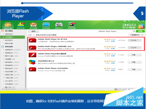 如圖,確保for IE的Flash插件安裝和跟新,這會導(dǎo)致網(wǎng)頁打不開。