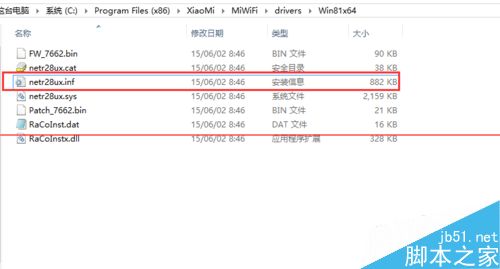 如果你直接裝在C盤的話,一般是在這里:C:/Program Files (x86)/XiaoMi/MiWiFi/drivers/Win81x64/netr28ux.inf總之找到netr28ux.inf就ok了!