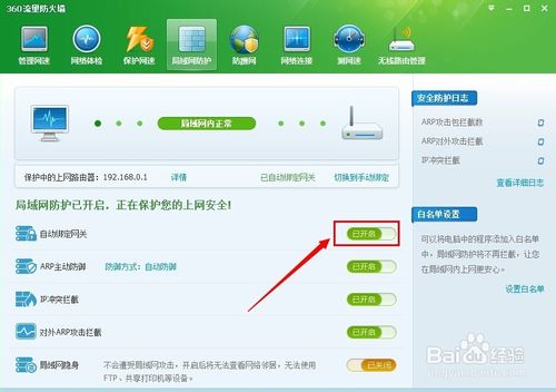 接著在打開的界面中,開啟“自動綁定網(wǎng)關(guān)”項。這樣就可以有效阻止局域網(wǎng)限速軟件對網(wǎng)速的限制了。