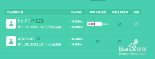 3、會得到以上界面,然后用鼠標點擊限制下載網速,這里我設置3000K,3000K大概是分配3M寬帶