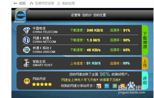 等待工具完成網(wǎng)速測試,檢測結(jié)果,如圖所示