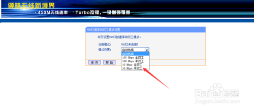 9、點擊該配置選項就可以進行連接速度和半雙工模式選擇了。