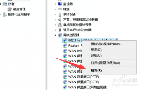 方是從這一步開始。進入【設備管理器】然后再找到網卡,再在上面點擊右鍵然后再點擊【屬性】
