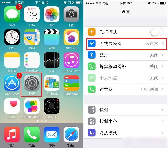 1、首先同樣是進(jìn)入iPhone手機(jī)【設(shè)置】,然后再進(jìn)入【無(wú)線局域網(wǎng)】設(shè)置,如下圖所示。