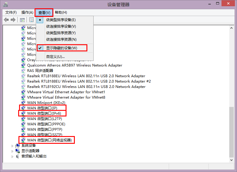wan微型端口(ip)、wan微型端口(ipv6)、wan微型端口(網絡監視器)這三個設備