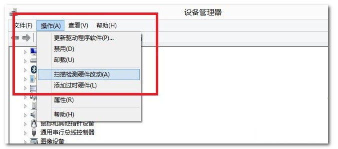 5. 再從上方菜單欄的操作中,選擇“掃描硬件改動”