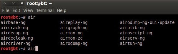 首先我們先來看下BT5下集成的無線工具,輸入air,TAB鍵