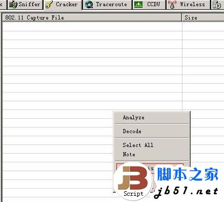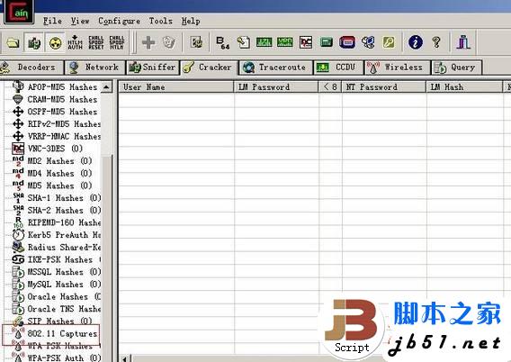 打開Cain,選擇Creaker,點擊左側分類欄的802.11Captures。
