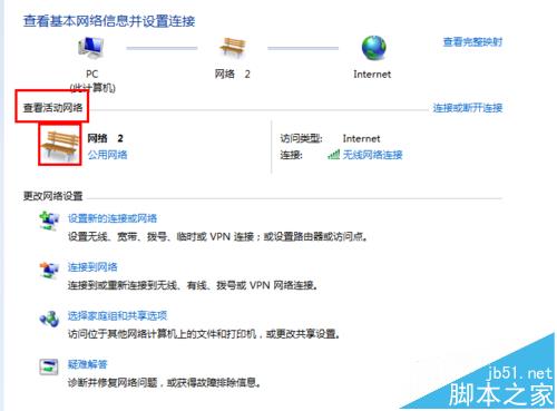 1、點擊方法1所說的"查看活動網絡“下面的圖標(公共網絡的圖標是一張長椅子)。